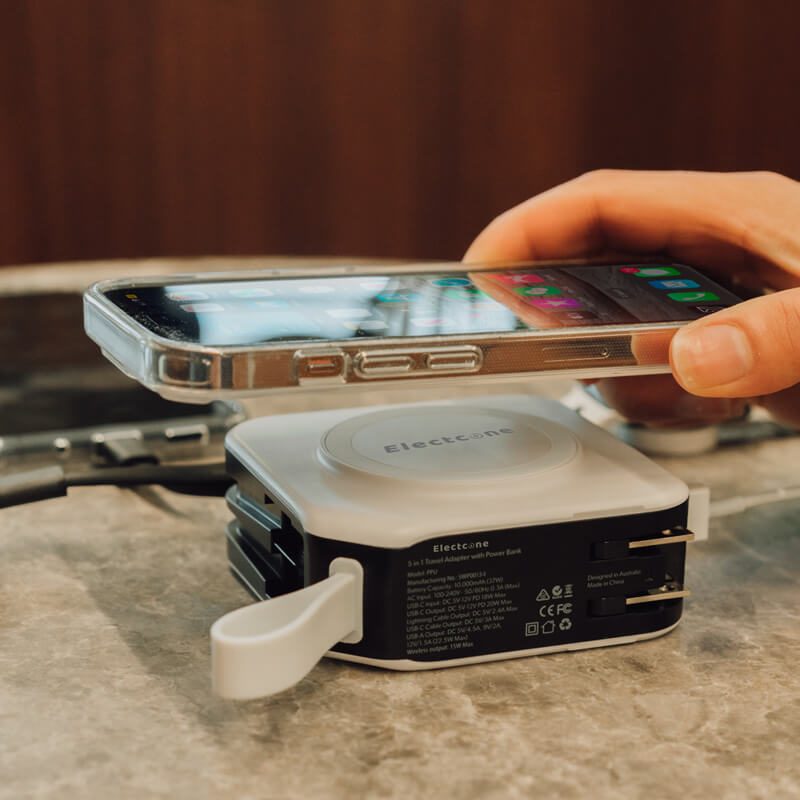 No charger is complete without the simplicity of wireless charging. 6 in 1 Travel Power Bank has a 15W fast Qi wireless charging area, making it a fast and convenient way to charge an extra device while on the go.