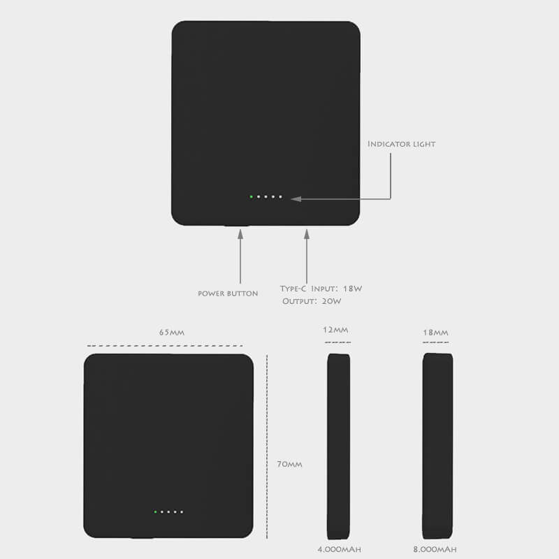 - √【WIRELES POWER BANK】Electcone introduces fast charging 4,000mAh&8,000mAh wireless charger which supports 5V3A, 9V/2A, 12V/1.5A, 18W Max input and Type-C 5V/3A, 9V/2.22A, 12V/1.5A, PD20W Max/Wireless 15W Max output.