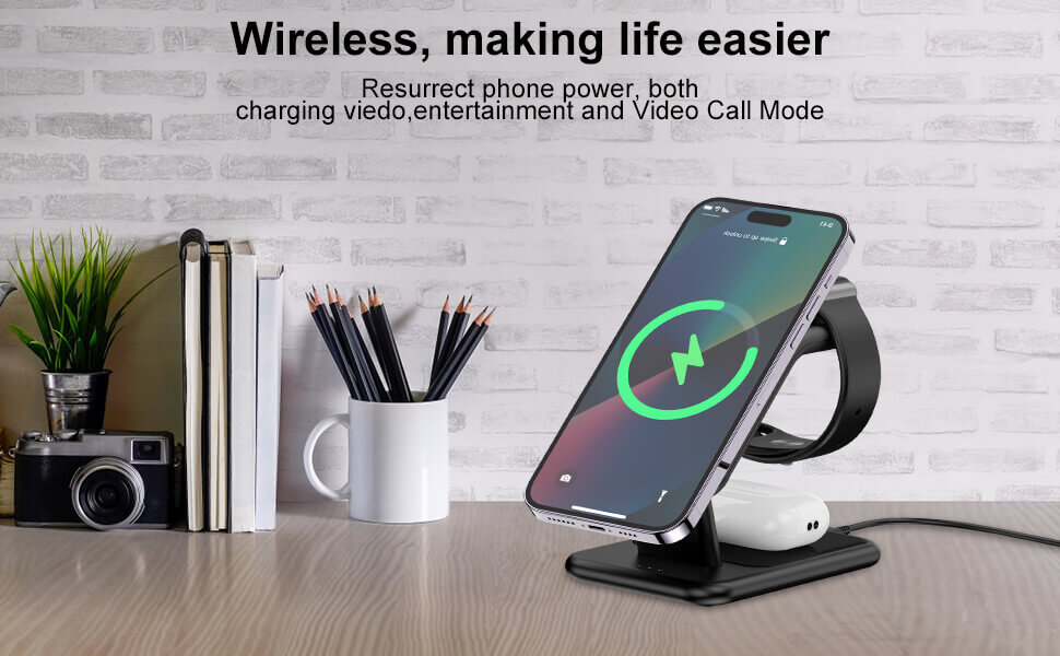 – Enjoy Entertainment and Video Call Mode,Leveraging the power of Mag Safe technology, simply place your iPhone on the charging stand for a secure, aligned connection in Entertainment or Video Call Mode.