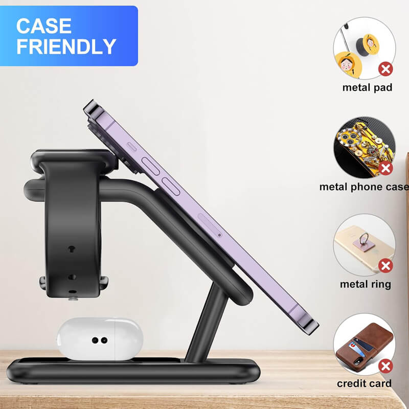 !!NOTE: You need to take off the phone case before charging; If your iPhone have phone metal pad/metal phone case/metal ring/credit card, please take off it before charging.