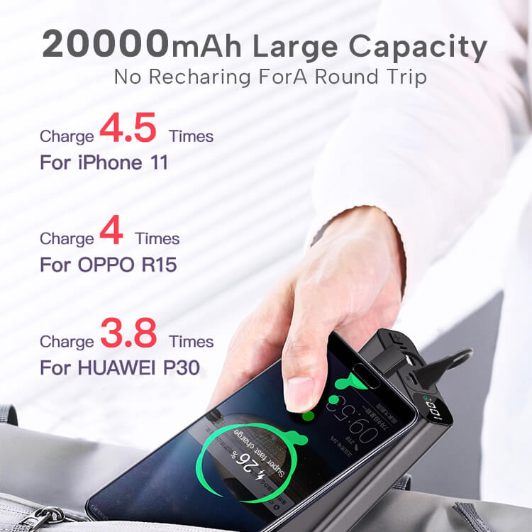 🔋 20000 mAh Large Capacity: 20000mAh PD power bank provides 4.6 charge times for iP 12, 3 times for Mate 40, 3.2 times for Galaxy S21. Ideal as a backup power supply for your devices when traveling.