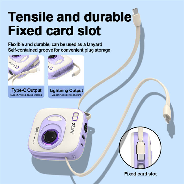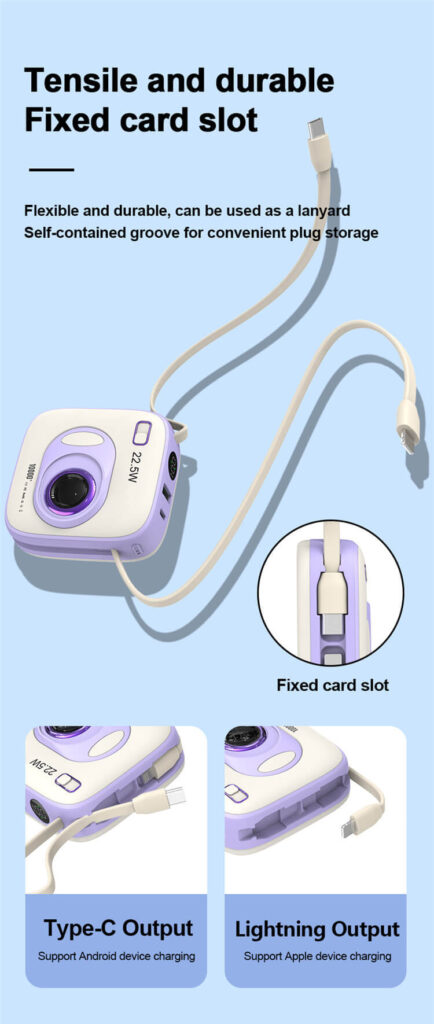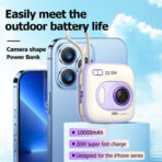 Ntroduction: AThrowback Design for Retro NeedsMeet our Retro Mini Camera or Retro Trendy Camera-inspired portable charger—a design that perfectly blends classic aesthetics with cutting-edge functionality. This charger is not just a practical tool but also a stylish accessory that stands out,10.000mAh powerbank keeps you connected while traveling, outdoors or on the go for long periods of time.