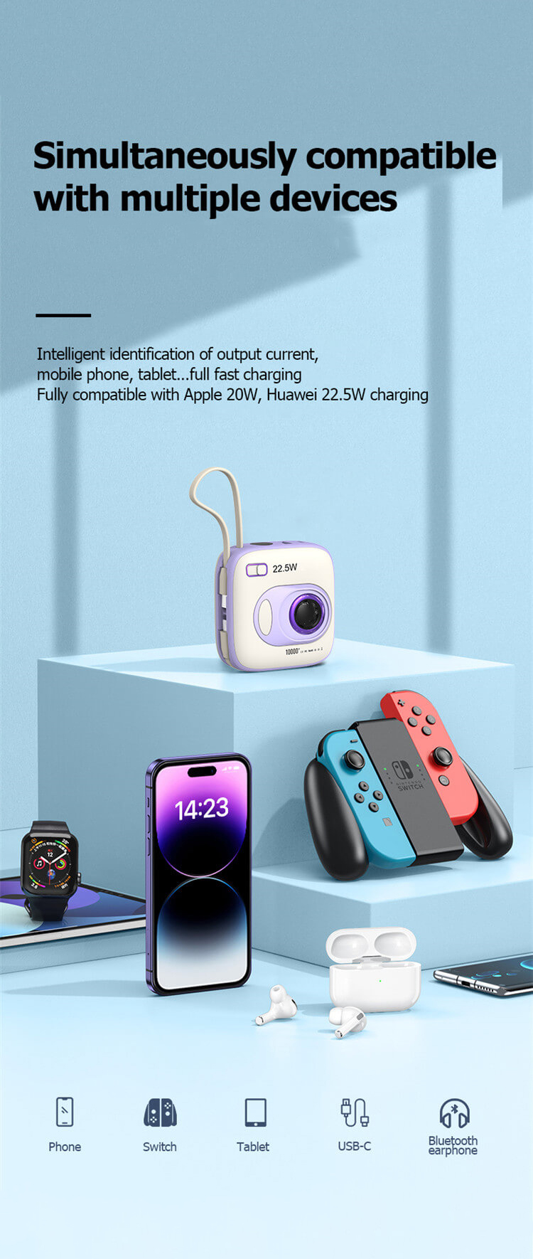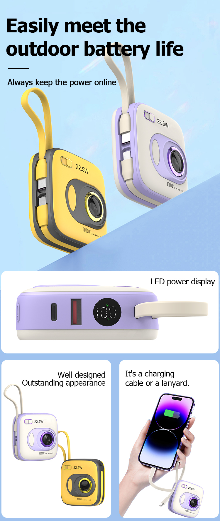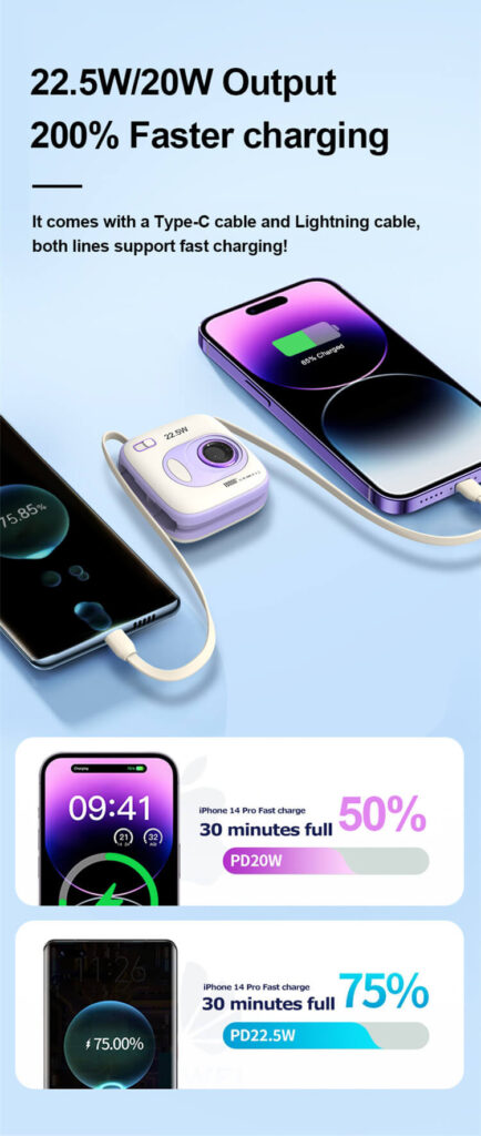 - Charge Your Phone up to 75% in 30 Mins: With the upgraded 22.5W output plus the latest PD3.0 & QC4+ fast-charge technologies, your phone can be charged at 75% in just 30 minutes.
